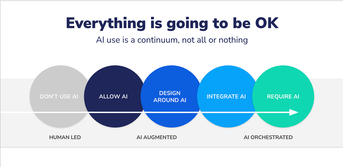 The continuum isn’t about who uses AI and who doesn’t — it’s a way of understanding how work actually shifts. Some work requires human judgment and must stay human. Some work is better when humans and AI share responsibility. And some work is structured enough that it should move toward autonomy. Classifying work this way gives teams a clearer path forward and removes the fear that everything is changing at once.